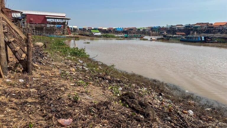 The floating villages are located on Tonlé Sap Lake: floating houses and villages built on stilts along the lake shore. A functioning waste management infrastructure often does not exist.